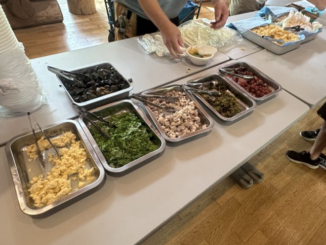 食事場所は、黒板のある小学校の教室。