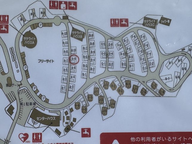 センターハウスは21時に閉まるため、トイレまでのアクセスを考えると○印あたりが人気エリア。