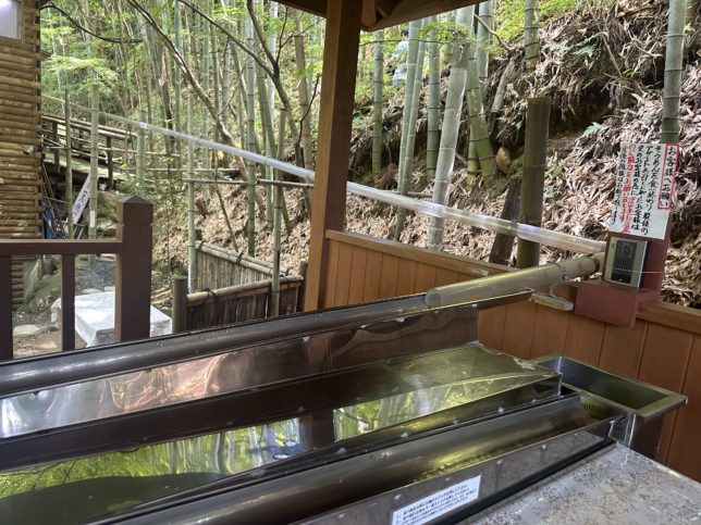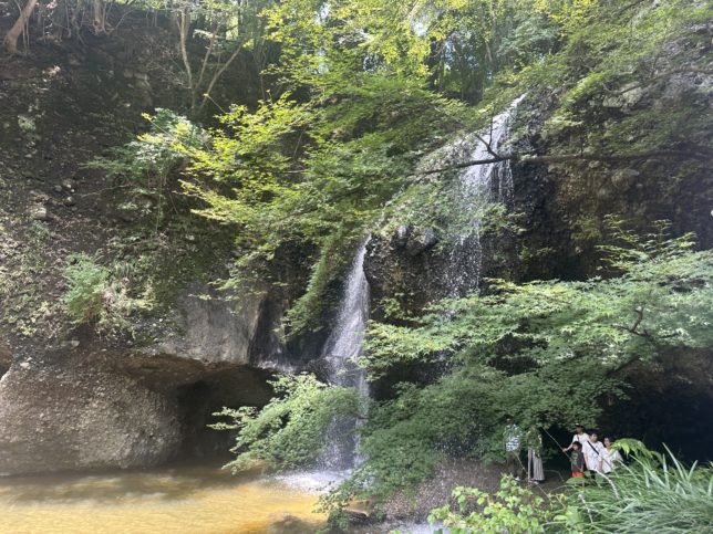 店前にある月待の滝は、裏側に歩いて入って、迫力を感じられます。